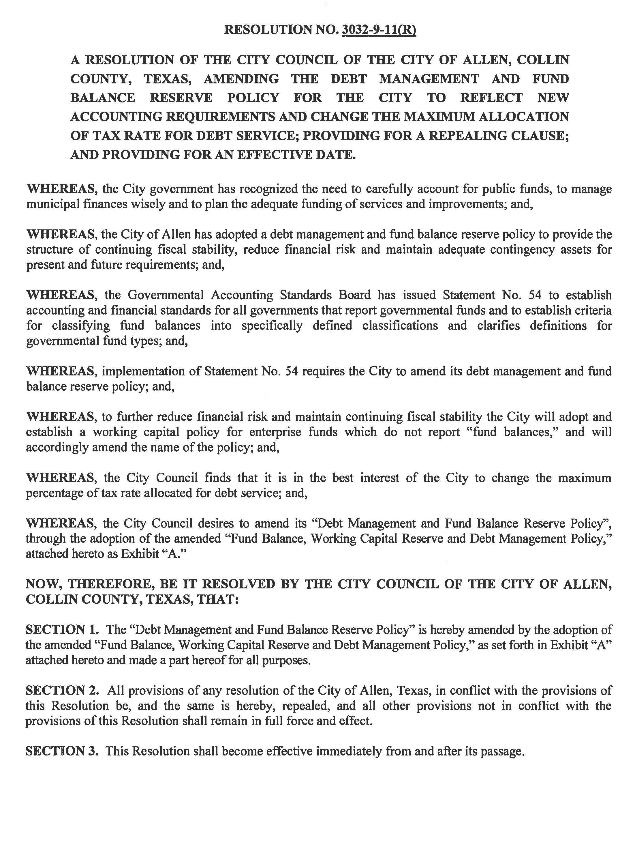 The Honorable Mayor, members of the Allen City Council, and citizens of Allen, Texas: