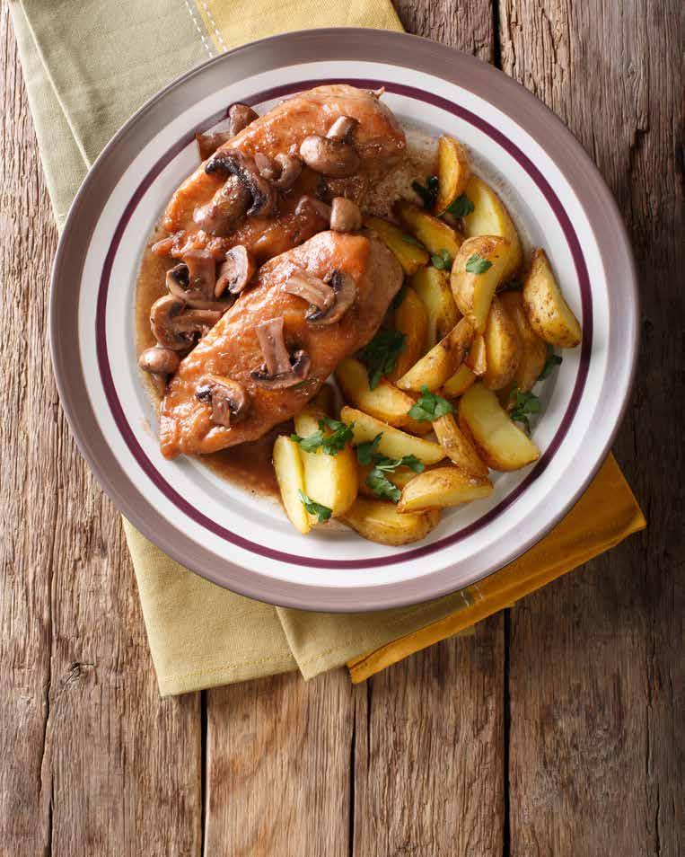 2. Place a large pan over medium heat. Heat the oil in it. Cook in it the chicken for 6 min. Drain it and place it aside.