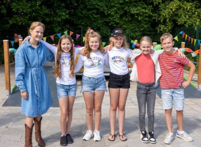 Speeltoestel KanZ-Klas officieel in gebruik genomen. Een van die speeltoestellen werd op 28 juni officieel in gebruik genomen door middel van het doorknippen van een lint, door de zes kanjers van groep 8a. In hun speech vertelden ze hoe ze dit geld bij elkaar hebben gespaard. Onder andere door cupcakeverkoop, carwash op het plein, en de Food te Voet tour bij de NH Horse Trials van manege Beukers werd euro voor euro bij elkaar gesprokkeld tot het gewenste eindbedrag - en meer - was bereikt.