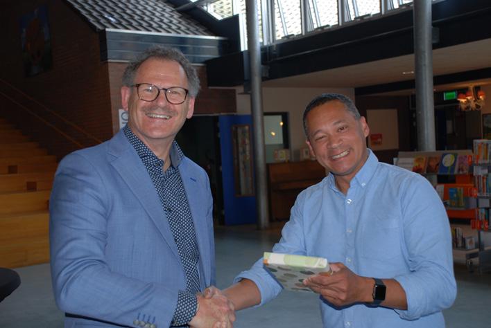 De opdrachten die bij Scoor een boek! horen hebben ze flitsend uitgevoerd en de leerlingen hebben met het juiste antwoord een prachtig gedicht gemaakt. Ook hebben zij E-sporter Jens het hemd van het lijf gevraagd over zijn baan bij AZ, gamen en lezen. Tijdens dit bezoek Heeft Jens het boek ‘Hondenpoep tussen je noppen’ van Corien Oranje, namens Bibliotheek Kennemerwaard cadeau gedaan.