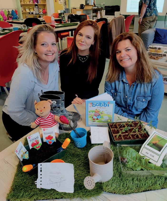 We hebben aandacht besteed aan de taalontwikkeling en de woordenschat van jonge kinderen. De verteltafel is een mooi middel om de ontwikkeling van jonge kinderen te bevorderen. In groepjes is er gewerkt aan het opzetten van de verteltafel aan de hand van het boekje ‘Bobbi in de tuin’.
