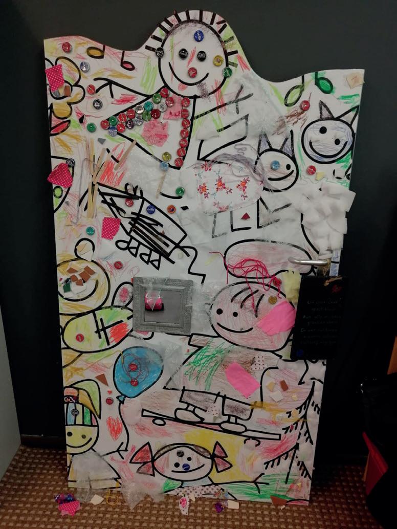 Bij Muizenhol en Spijtebijt hebben ze de oude deur van de Paus Johannes beschilderd, betimmerd en belakt met mooie lintjes en knopen. Er zit zelfs een mooi gedicht op:
