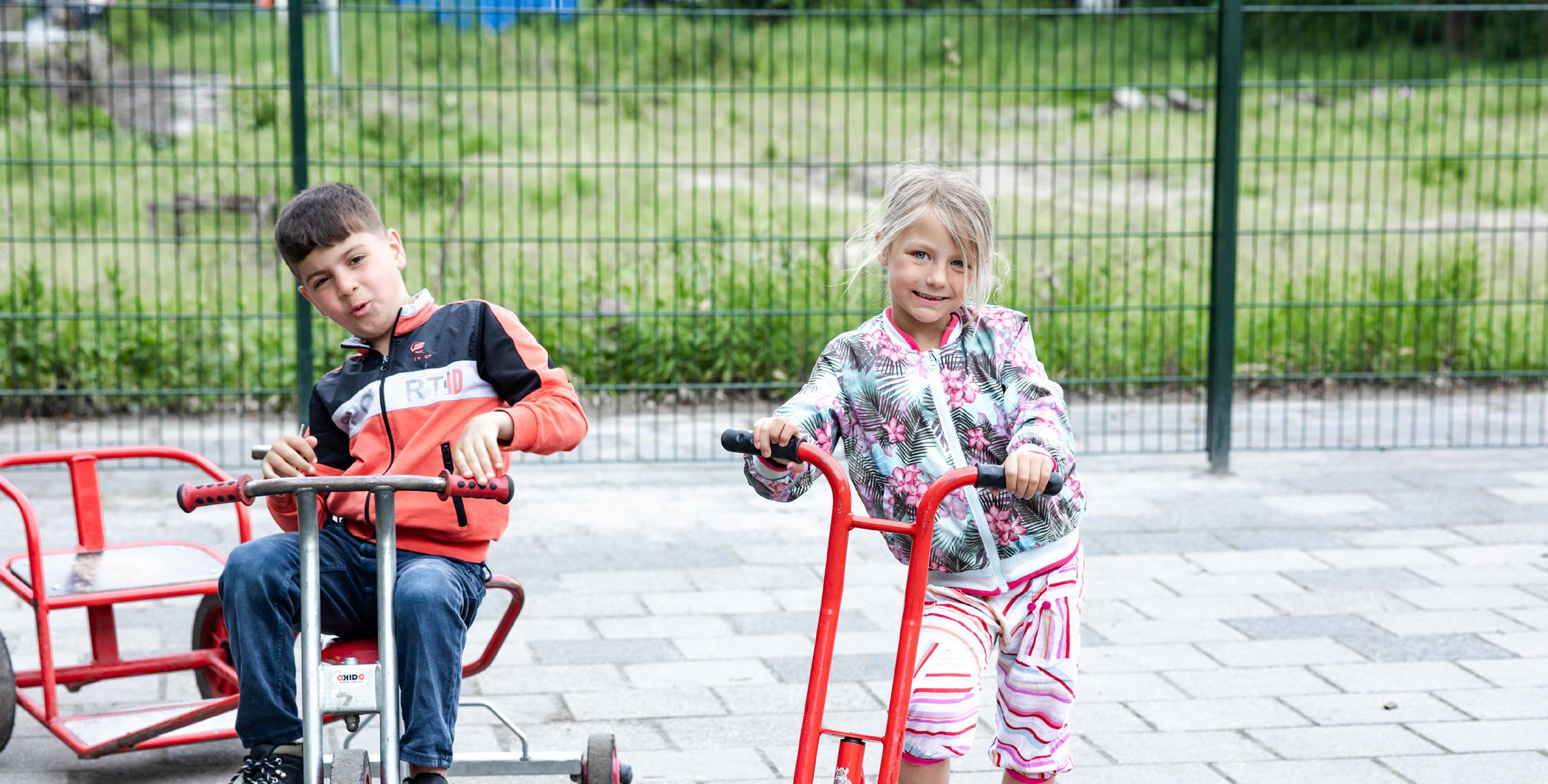 Skeelers, skateboards en steppen zijn alleen toegestaan in het gedeelte bij de fietsenstalling, laat uw kinderen bescherming dragen. Het gebruik is op eigen risico. Fietsen op het plein is niet toegestaan om gevaarlijke situaties bij het buitenspelen te voorkomen. Alles met wielen wordt buiten geparkeerd in de fietsenstalling, niet op het schoolplein.