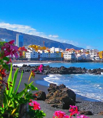 Sammen med rejselederen ser vi nærmere på Puerto de la Cruz. Vi ser bl.a. de karakteristiske sorte lavastrande ikke langt fra vores hotel, og så giver rejselederen masser af tips til områdets gode restauranter, caféer og butikker.