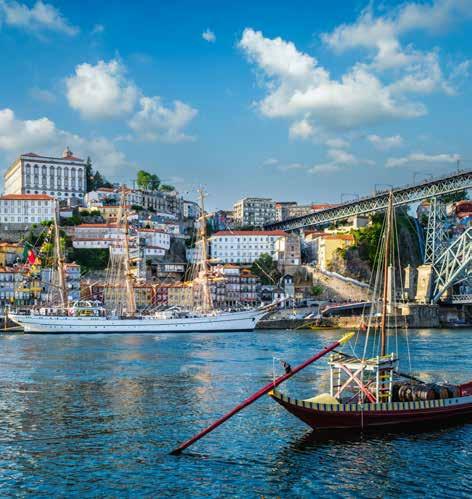 MED I PRISEN Fly til Lissabon t/r, transfer lufthavn – hotel t/r, håndbagage og indtjekket bagage, 14 nt. i dobbeltværelse med balkon, turistskat, 14 x morgenmad, 7 x middagsbuffet inkl. ½ flaske vin, 2 x middag med regionale retter og ½ flaske vin, 1 x afskedsmiddag inkl. ½ flaske vin, togbillet til Lissabon, udflugter og entréer jf. program, dansk rejseleder