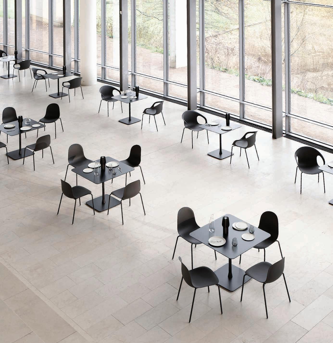 Axyl tables are exceptionally robust for continued use in high impact dining areas. The use of a solid steel stem on the café range, greatly enhances the stability of the table while minimizing the need for a large frame base.