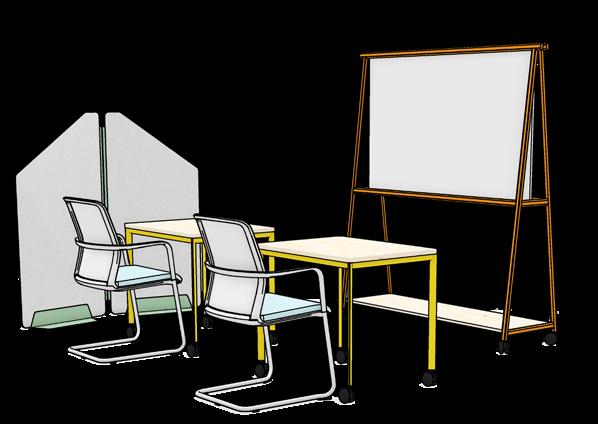 The Classroom uses the multifunctionality of Play to help provide an education and training focused set up. In this setting we have combined Play Screens with Play Tables and a Play Whiteboard to provide an agile and adaptable working space.