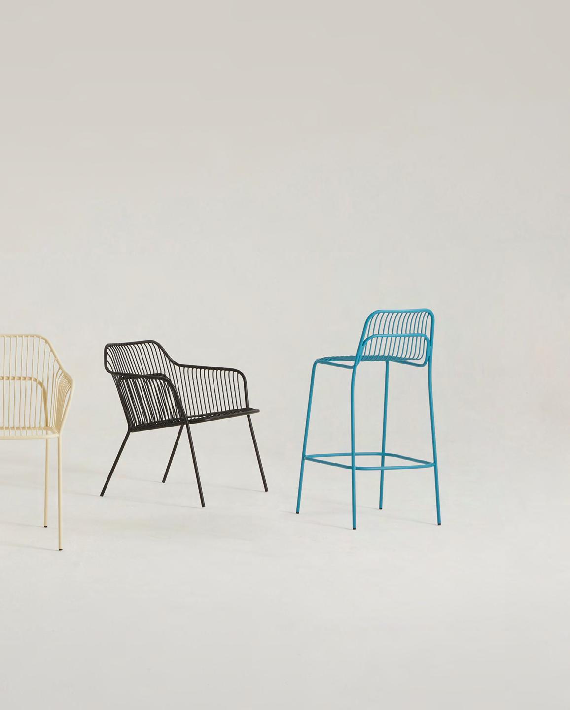 Crop is a family of outdoor chairs and stool designed by Benjamin Hubert of LAYER for Allermuir. The collection takes its name from the enigmatic rolling fields of British crops in the countryside, which are represented in the flowing parallel wires of the seating forms.