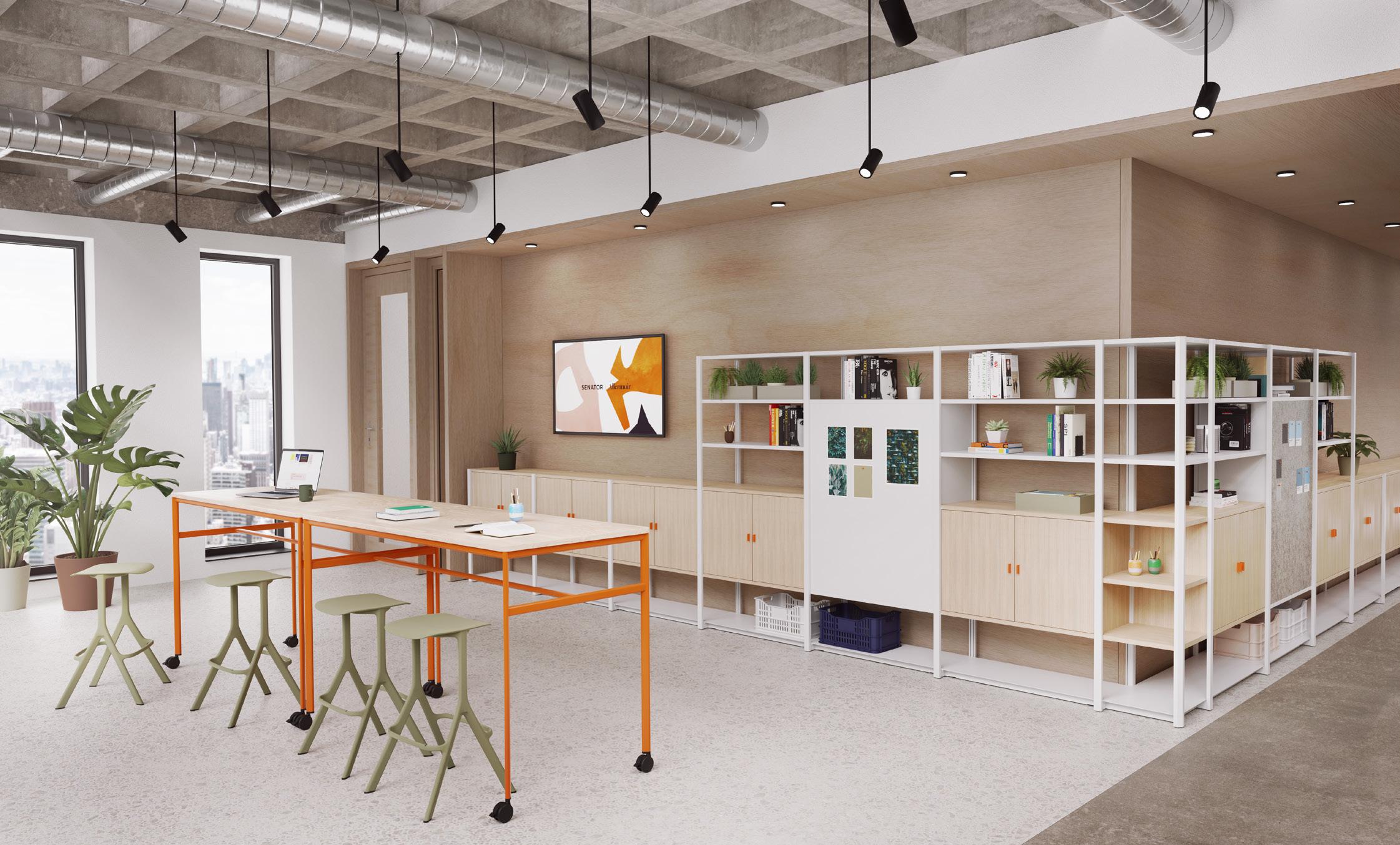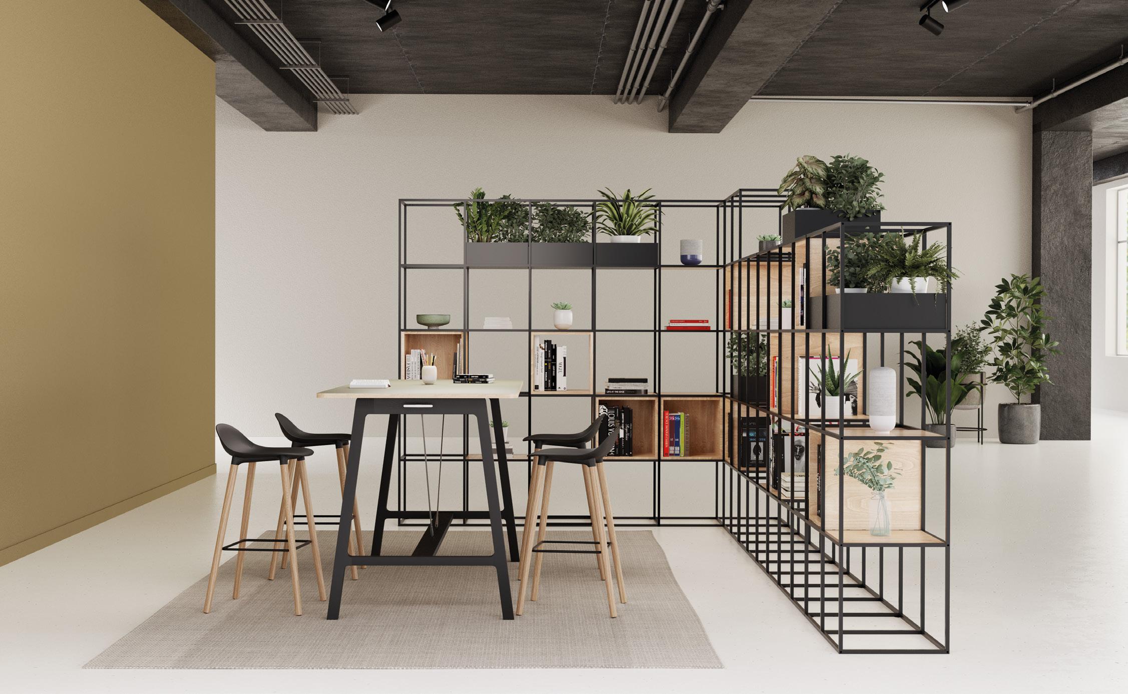 Framed is a highly customizable modular shelving system which can be configured to transform any open plan environment into more inspiring and productive spaces.