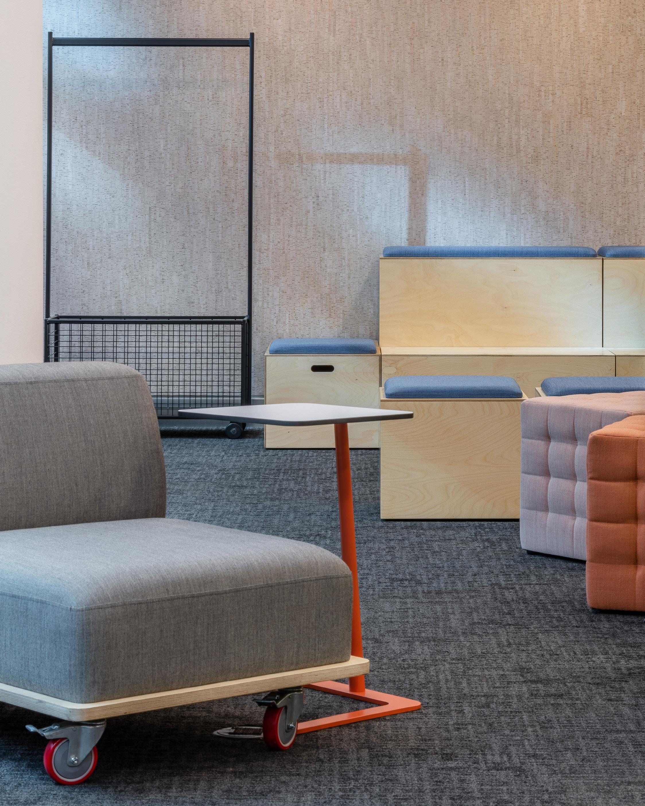 CC It definitely was. The re-purposing program went hand in hand with a radical re-think of how the office is used and how it can become a catalyst to encourage return to work. The up-cycling piece was integral to the return-to-work strategy as the spaces had to look fresh, appealing and representative of company values but with a strong underlying sense of environmental responsibility. An acknowledgment of people’s need for more flexibility on office days shaped the response to the brief.
