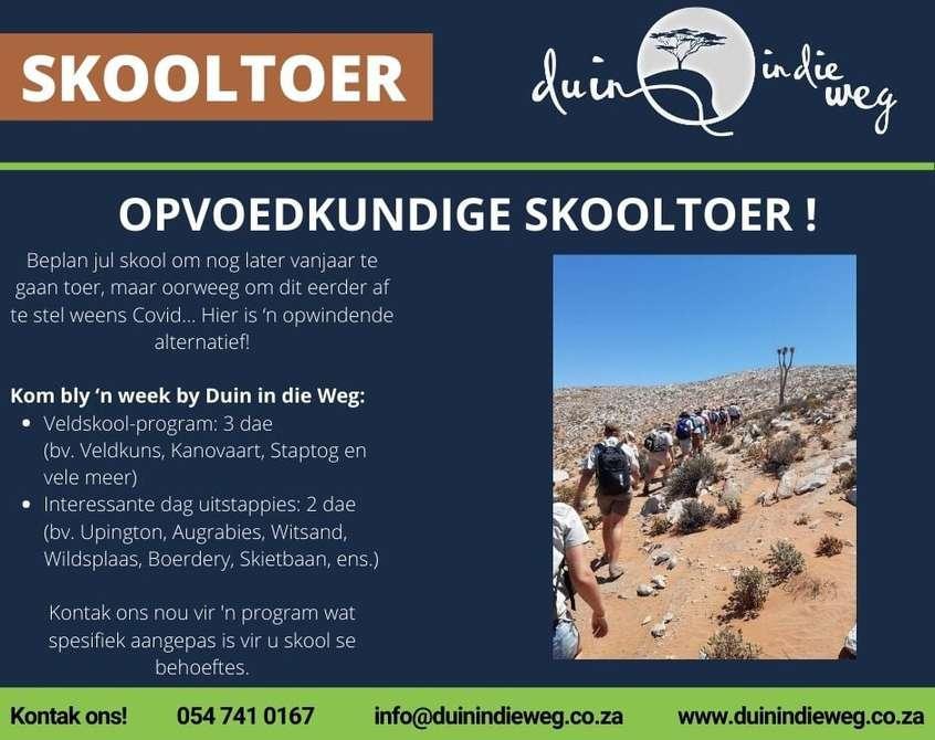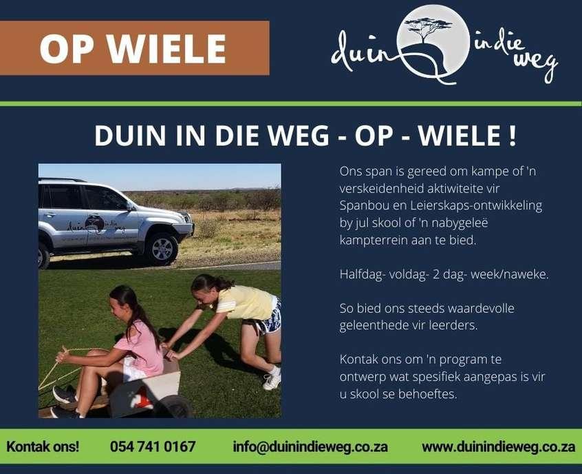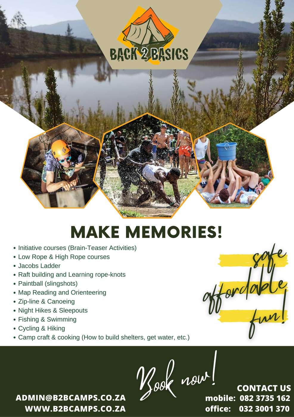 Buitelug speletjies, skattejag, kampvuur stories, modder avonture, toubane en vele meer!