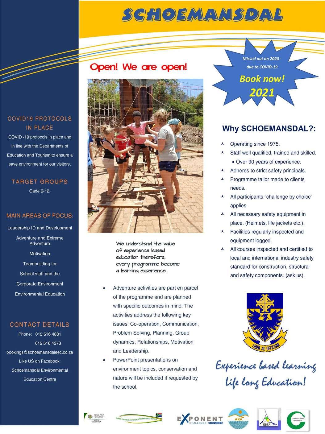 We offer schools, church groups, companies, etc. leadership development and team building programs, via experience based learning, teambuilding, problem solving, and various adventure oriented activities and courses. Conference organisers and selected groups also make use of our facilities. EMAIL US MANAGER@LEKKEROORD.CO.ZA CALL US 082 928 0589