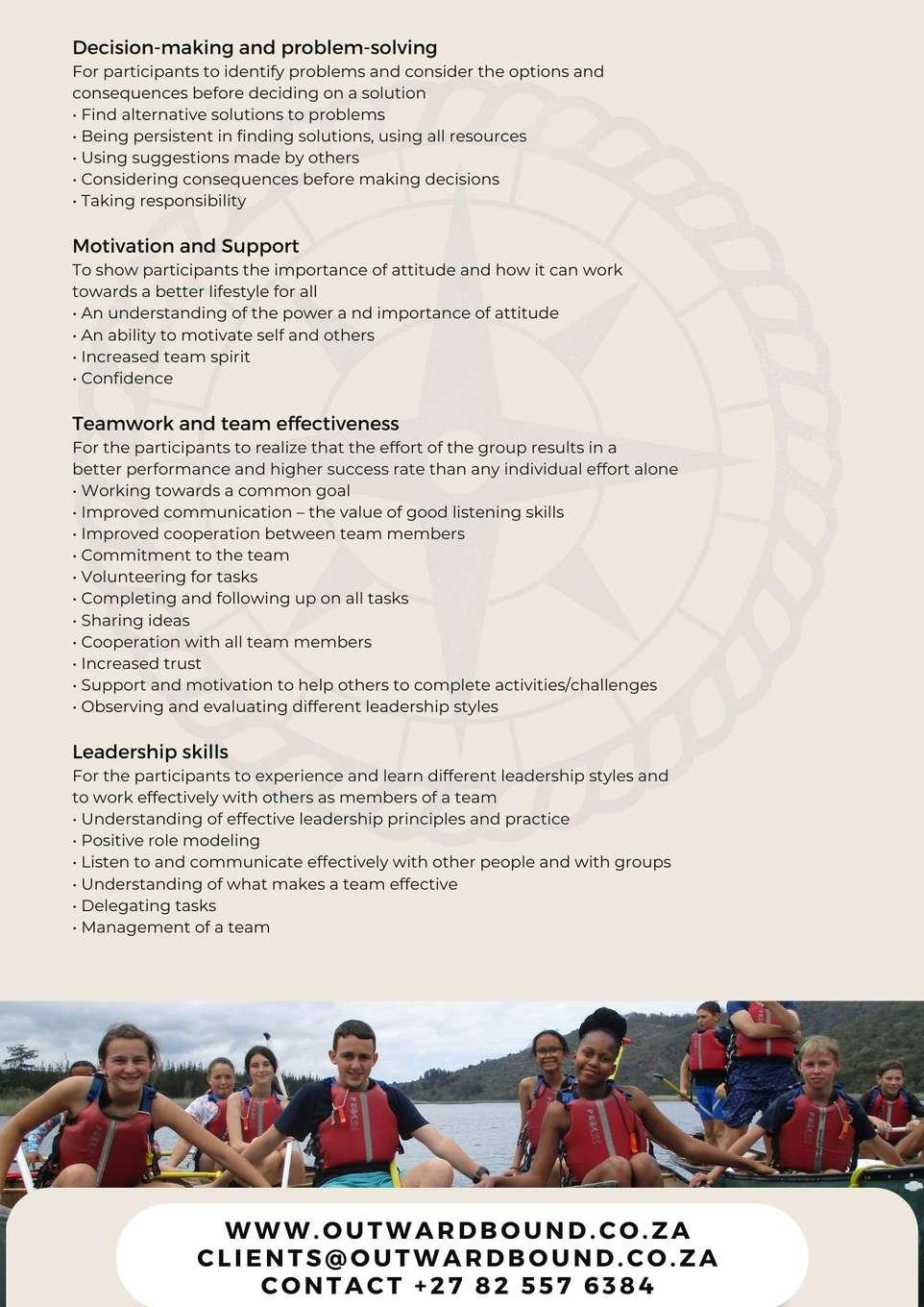 experience based learning, teambuilding, problem solving, and various adventure oriented activities and courses. Conference organisers and selected groups also make use of our facilities.