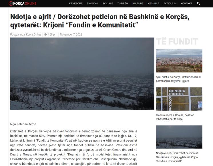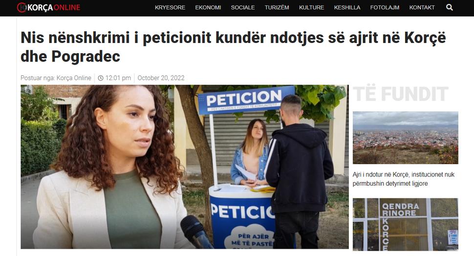 ushtruar presion ndaj Bashkisë Korçë dhe Pogradec, për të përmirësuar cilësinë e ajrit gjatë stinës së dimrit, që vjen nga drutë e zjarrit. Kjo