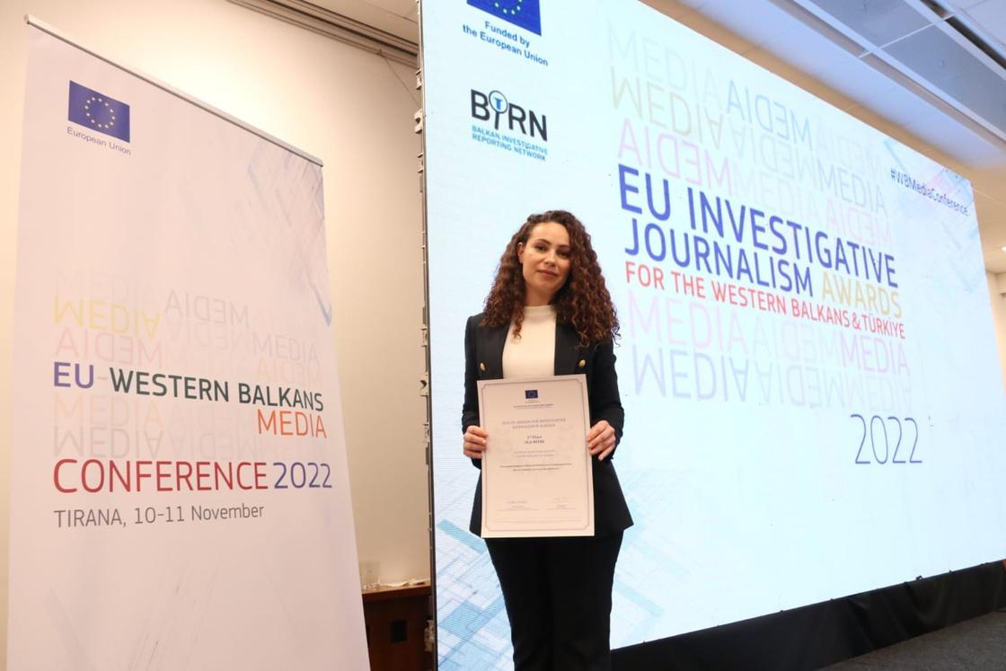 Ekzekutive e All Green Centre. Akordimi i çmimit u bë gjatë Konferencës së Mediave BE - Ballkani