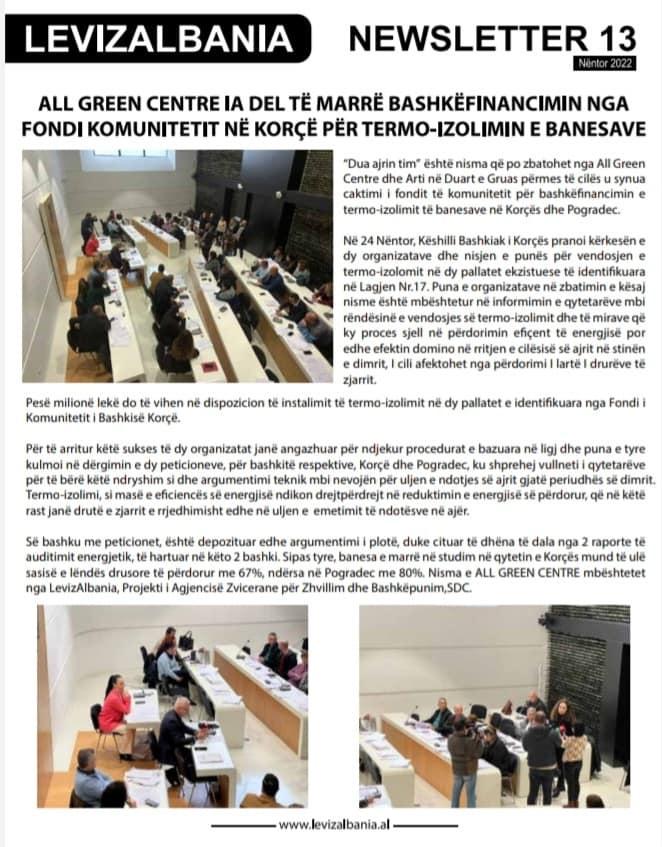 aktivitetesh, sikurse ishin forumet qytetare, marshimet, nënshkrimi i peticioneve, paraqitja e tyre në këshillat bashkiakë, hartimi i raporteve të auditimit energjetik në banesë, etj.