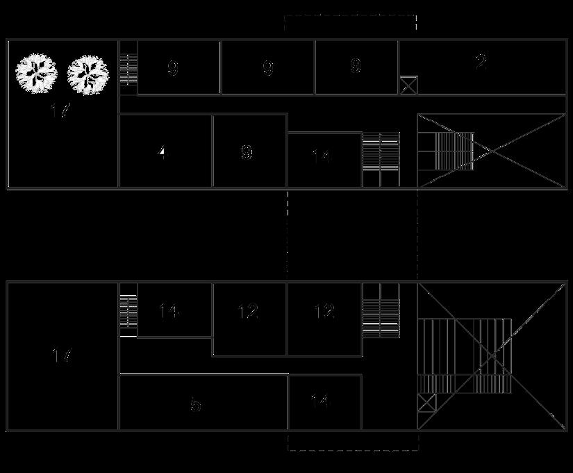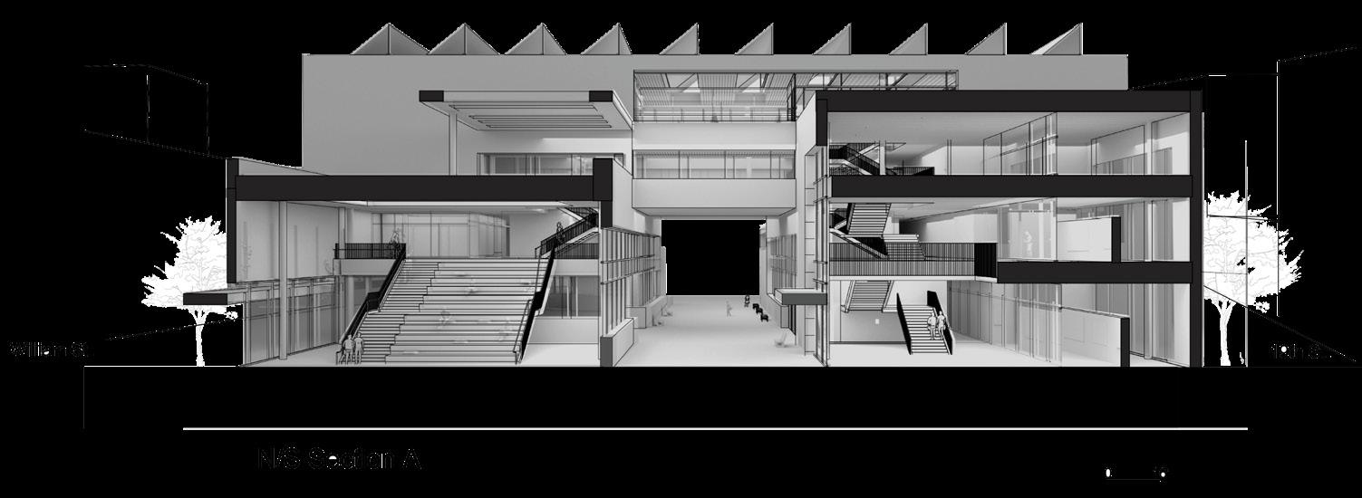 The section shows the different rooms in each building and by adding a shared space in third and fourth floor, it gives both structure a connection and this is met by placing the studios for architecture and art together.