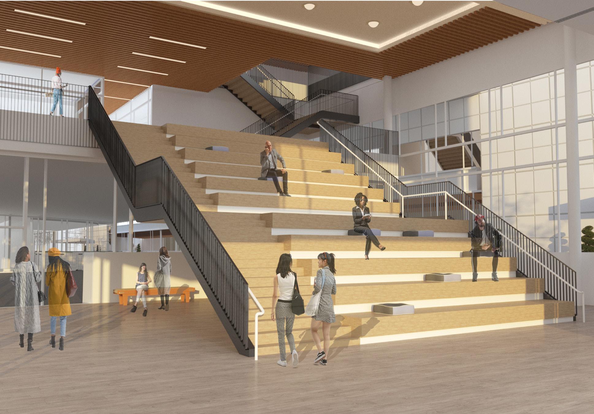As an urban project, I carefully took the surrounding elements in my building by bringing the stepping roof gardens closer to the park and including a social area to non-students who can admire all the student’s works.