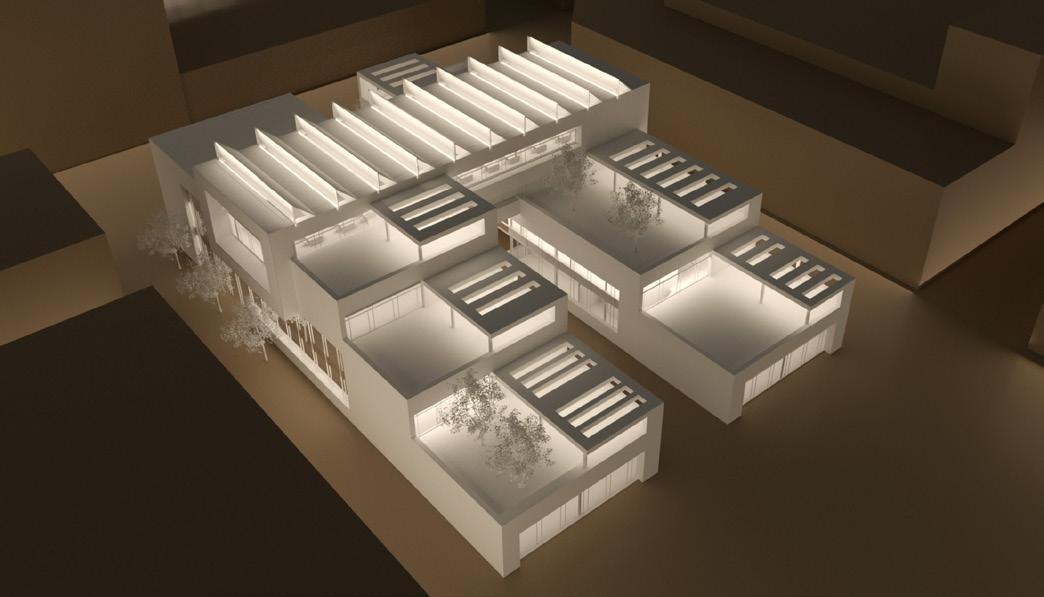 For natural light, I applied sawtooth skylight inspired by Louis Kahn. I also developed south facing façade that is mostly glass with openings that can be controlled to allow air to enter the museum space.
