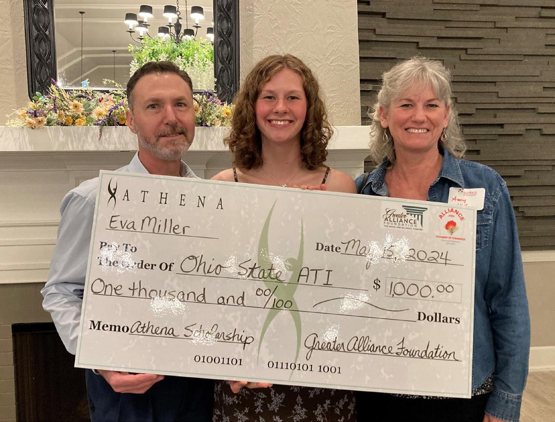 Congratulations to Alliance High School senior Eva Miller for receiving the Athena Scholarship! The $1,000 award was presented to her at the Chamber of Commerce annual meeting at the Alliance Country Club on May 15, 2024.