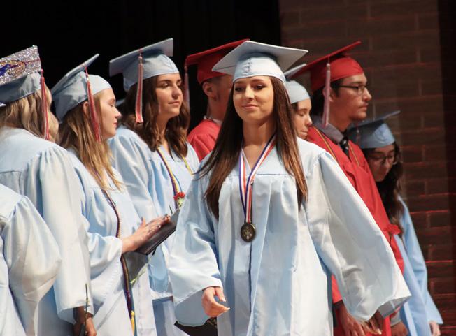 Dressed in red and columbia blue gowns and caps, the graduates passed out hugs to former teachers and high fives to the young Aviators who will one day be in their shoes preparing to take on the world after high school.