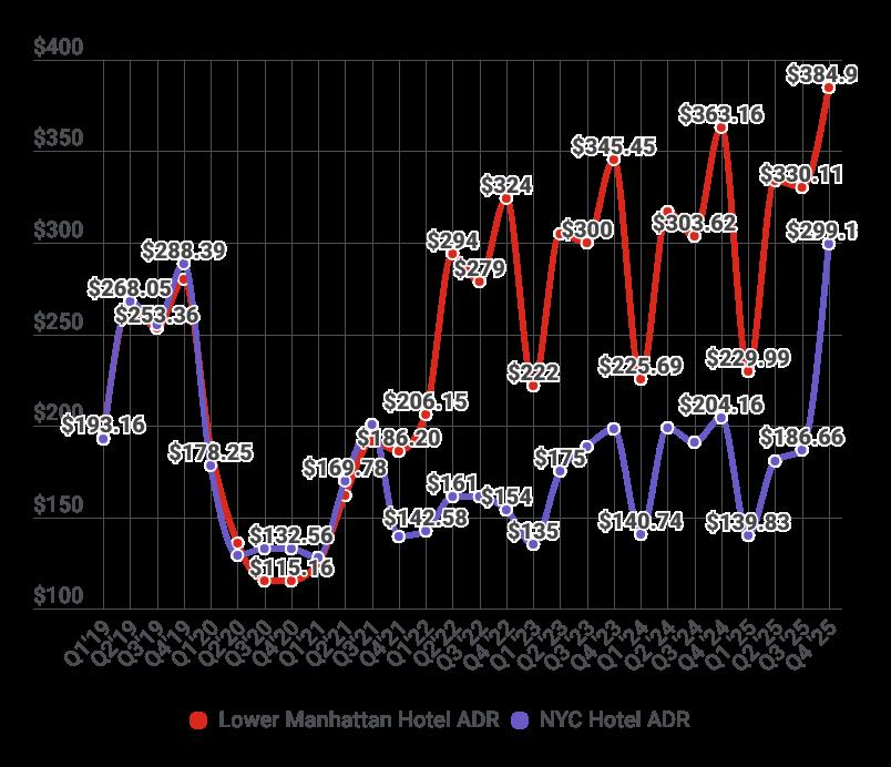 Hotel Average Daily Room Rate (ADR) in Lower Manhattan and New York City