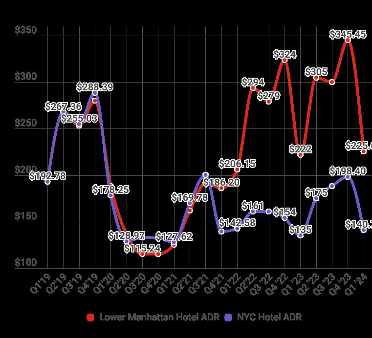 Hotel Average Daily Room Rate (ADR) in Lower Manhattan and New York City