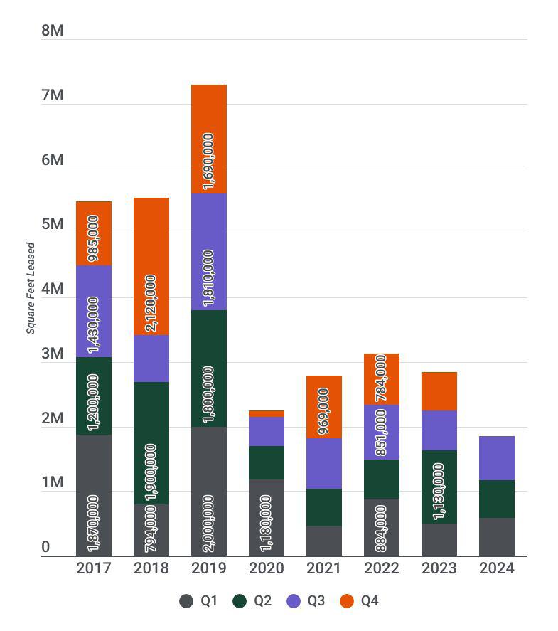 Lower Manhattan Annual New Leasing Activity, 2017-2024