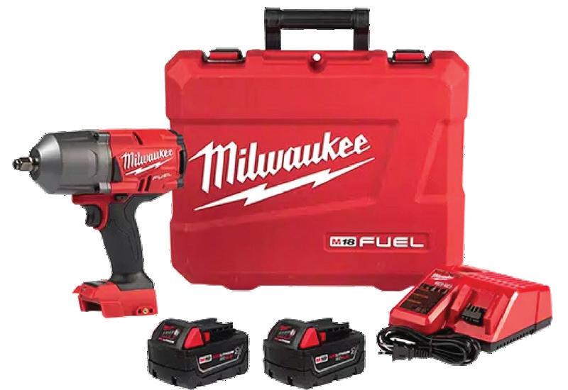 Eliminates the need to use a pneumatic tool for those stubborn and rusted bolts by delivering 1,100 ft-lbs of fastening torque and 1500 ft-lbs of nut-busting torque. Includes: M18 FUEL™ 1/2” High Torque Impact Wrench with Friction Ring (Tool Only) (2767-20), (2) M18™ REDLITHIUM™ XC5.0 Resistant Battery (48-11-1850R), (1)