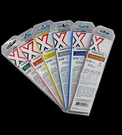 PLACE YOUR ORDER TODAY! Due to marketplace volatility, prices and availability are subject to change without notice. XTRweld - Tungsten Electrodes 10 pieces per pack. Product# Dia. Len. Material Color UOM Price XTRWTTH2062 1/16 in. 7 in. 2% Thoriated Red Pack $ 8.95 XTRWTTH2093 3/32 in. 7 in. 2% Thoriated Red Pack $19.25 XTRWTTH2125 1/8 in. 7 in. 2% Thoriated Red Pack $31.45 XTRWTPURE062 1/16 in. 7 in. Pure Green Pack $ 9.25 XTRWTPURE093 3/32 in. 7 in. Pure Green Pack $19.90 XTRWTPURE125 1/8 in. 7 in. Pure Green Pack $32.55 XTRWTE3062 1/16 in. 7 in. E3 Purple Pack $14.95 XTRWTE3093 3/32 in. 7 in. E3 Purple Pack $29.85 XTRWTE3125 1/8 in. 7 in. E3 Purple Pack $50.55 XTRWTLAN15062 1/16 in. 7 in. 1.5% Lanth. Gold Pack $ 9.25 XTRWTLAN15093 3/32 in. 7 in. 1.5% Lanth. Gold Pack $19.90 XTRWTLAN15125 1/8 in. 7 in. 1.5% Lanth. Gold Pack $32.55 XTRWTLAN20062 1/16 in. 7 in. 2.0% Lanth. Blue Pack $ 9.25 XTRWTLAN20093 3/32 in. 7 in. 2.0% Lanth. Blue Pack $19.90 XTRWTLAN20125 1/8 in. 7 in. 2.0% Lanth. Blue Pack $32.55 XTRWTCER2062 1/16 in. 7 in. 2% Ceriated Gray Pack $ 9.25 XTRWTCER2093 3/32 in. 7 in. 2% Ceriated Gray Pack $19.90 XTRWTCER2125 1/8 in. 7 in. 2% Ceriated Gray Pack $32.55 XTRweld - 6011 Coated Electrodes » Conforms to AWS A5.1 E6011. » 1 lb. tubes are also available and suitable for retail. Product# Diameter Weight Pack Type UOM Price XTRSE6011093-10 3/32 in. 10 lb. Tube Lb. $2.10 XTRSE6011125-10 1/8 in. 10 lb. Tube Lb. $2.05 XTRSE6011156-10 5/32 in. 10 lb. Tube Lb. $2.05 XTRweld - 7018 Coated Electrodes Conforms to AWS A5.1 E7018. Product# Diameter Weight Pack Type UOM Price XTRSE7018093-10 3/32 in. 10 lb. Tube Lb. $2.15 XTRSE7018125-10 1/8 in. 10 lb. Tube Lb. $2.10 XTRSE7018156-10 5/32 in. 10 lb. Tube Lb. $2.10 XTRweld