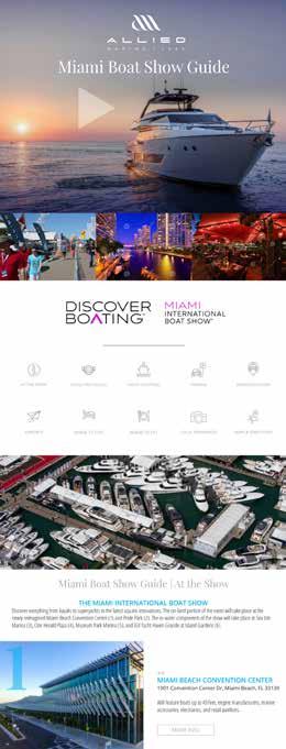 Check out Allied Marine's 28-page, Miami Boat Show Guide. The most extensive boat show guide available with everything to do and see in and around the show. Check it out at https://www.alliedmarine.com/ yachting-news/2023-miami-boat-showguide or download here: