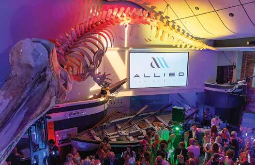 About 500 distinguished guests danced and dined at one of the most exclusive summer parties of the year in the island hotspot of Nantucket, Massachusetts, in July. Celebrations centered around N Magazine’s 20th anniversary and for this years occasion, Allied Marine partnered with N Magazine to present the Allied Marine Lounge & Bar, to host the N Magazine Platinum Party VIP Guests. Allied Marine clients and brokers in the Northeast joined the exclusive party. Known for Ferretti Yachts, Riva, Itama, Custom Line, Pershing, and Wally lines, the Allied Marine team also showcased an elegant Riva 88’ Folgore yacht docked at the Boat Basin in front of Cru Restaurant. Just as N Magazine is famous for fascinating and remarkable stories of the community surrounding this tiny, isolated island off Cape Cod, this party certainly fit the bill. The magazine covers the historical and contemporary maritime lifestyle, as well as media stars, local icons, what's hip, and the most innovative and inspiring in dining - and all the above were found among the glimmering guests at the event's unique location, the Nantucket Whaling Museum. Partying in the museum's mezzanine with a terrific view of the excitement and the genuine whale skeleton, glimmering partygoers danced the night away with DJ Maple Syrup under disco balls and lights.