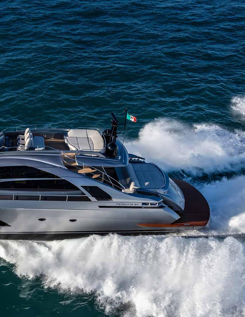 The carbon fiber revolution. The umpteenth leap forward in Pershing style, each and every component designed to amaze, starting with the construction material. Lightweight, fast, hyper-performing, with the most spacious, welcoming spaces and a new propulsion system, the Pershing 8X is the dream and masterpiece of the “X Generation”.