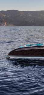 The bow area is run through with unmistakable details in perfect Riva style. Turning to the helm station, the dashboard includes two 12inch digital displays and integrated navigation instruments. Aquarama-inspired vintage features abound, like the Vienna straw storage pocket with steel trim behind the driver’s seat.