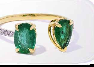 Pucci's printed silk maxi dress is ideal for keeping cool during the day or enjoying at an evening cocktail event. Pair it with a grass-seed-inspired Ileana Makri handcrafted emerald mini hoop earrings and House of Meraki Juniper 18-karat gold, emerald and diamond ring, perfect for spring.