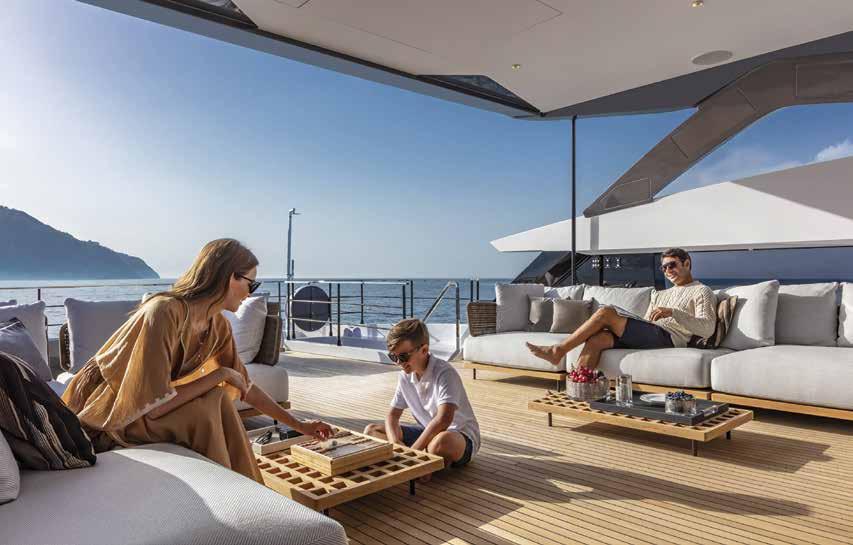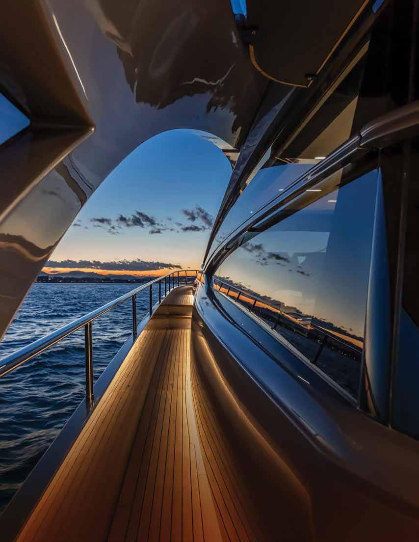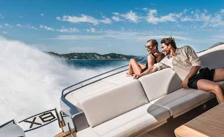 The unrivaled combination of quality and innovation creates spaces which are exceptional in terms of both aesthetics and functionality. With dual side access, the main deck ensures intimacy and privacy. The helm station is a masterpiece of design, technology, and sportiness. The innovative Music Hull system allows music to be listened to underwater, with high audio quality.
