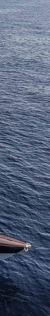 The foredeck is clad entirely in polished mahogany planking. Continuing the tradition of hand craftsmanship, all the wooden parts of Anniversario are protected by the Sarnico-based yard’s famous twenty-four coats of varnish. Two deck portholes inspired by the Aquarama, one on either side, bring natural light down below deck. The centrally positioned steel casing adds a sumptuously elegant accent to the deck, as well as housing the navigation lights.