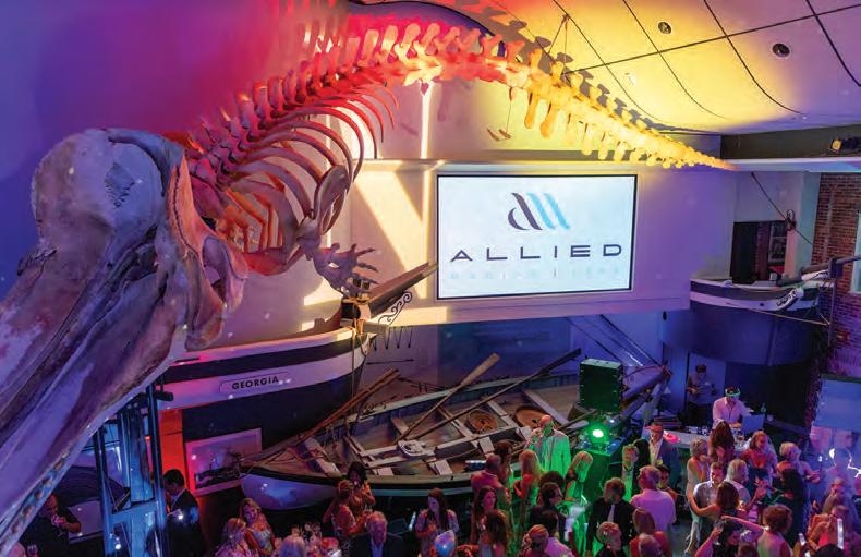 About 500 distinguished guests danced and dined at the one of the most exclusive summer parties of the year in the island hotspot of Nantucket, Massachusetts in July. Celebrations centered around N Magazine’s 20th anniversary and for this years occasion, Allied Marine partnered with N Magazine to present the Allied Marine Lounge & Bar, to host the N Magazine Platinum Party VIP Guests. Allied Marine clients and brokers in the Northeast joined the exclusive party. Known for Ferretti Yachts, Riva, Itama, Custom Line, Pershing, and Wally lines, the Allied Marine team also showcased an elegant Riva 88’ Folgore yacht docked at the Boat Basin in front of Cru Restaurant. Just as N Magazine is famous for fascinating and remarkable stories of the community surrounding this tiny, isolated island off Cape Cod, this party certainly fit the bill. The magazine covers the historical and contemporary maritime lifestyle, as well as media stars, local icons, what's hip, and the most innovative and inspiring in dining - and all the above were found among the glimmering guests at the event's unique location, the Nantucket Whaling Museum. Partying in the museum's mezzanine with a terrific view of the excitement and the genuine whale skeleton, glimmering partygoers danced the night away with DJ Maple Syrup under disco balls and lights.