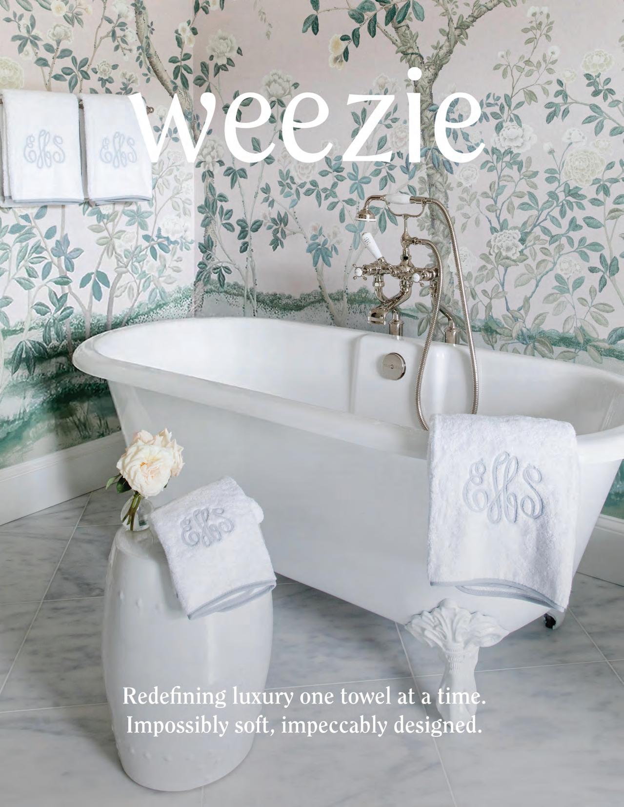 The idea for what ultimately became Weezie came several years ago: Liz had recently gotten married, bought a new home in Savannah (upgrading from a tiny NYC apartment!), and was on the hunt for fresh towels. Unfortunately, the process proved to be frustrating and overwhelming: the jargon was confusing, quality was unpredictable, and embroidery options were archaic. What should have been a joyful experience really fell flat.