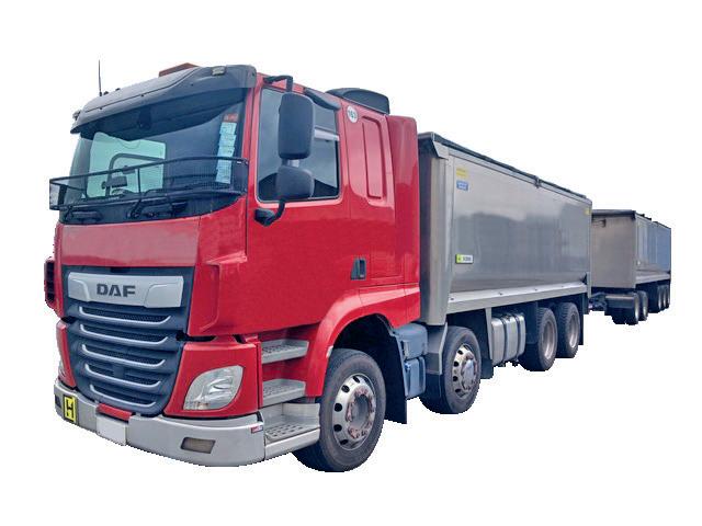 2018 DAF CF AND 4 AXLE T&G TRAILER, Engine: Paccar 13 LTR 510hp, Transmission: 18 Speed ROAD RANGER, Deck: T&G L 5M x H 1.6M, 2011 trailer, Axles/Suspension: SAF/ Drum/Spring, Transport Trailers: L 6.8M x H 1.6M.