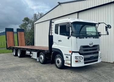 2021 TOYOTA LAY FLAT TRANSPORTER, Travelled only 70,362km’s. 7315kg gvm. 150hp and auto trans. Remote control deck. Full safety package equipped. Near new condition. $85,000+GST