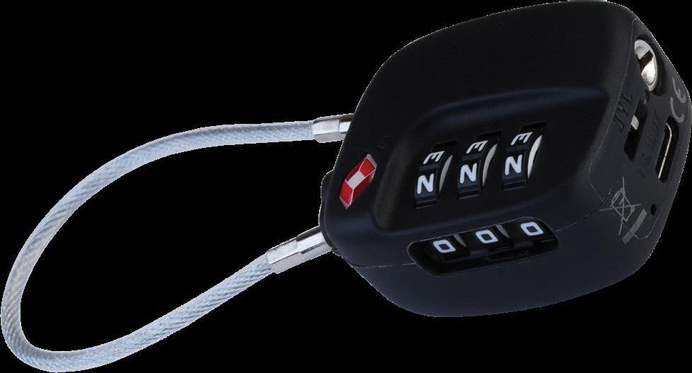 • Mantiene seguro tu equipaje, casilleros y equipo, y te ayuda a encontrarlos si se extravían.