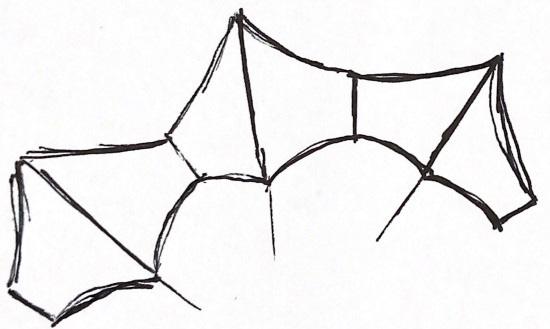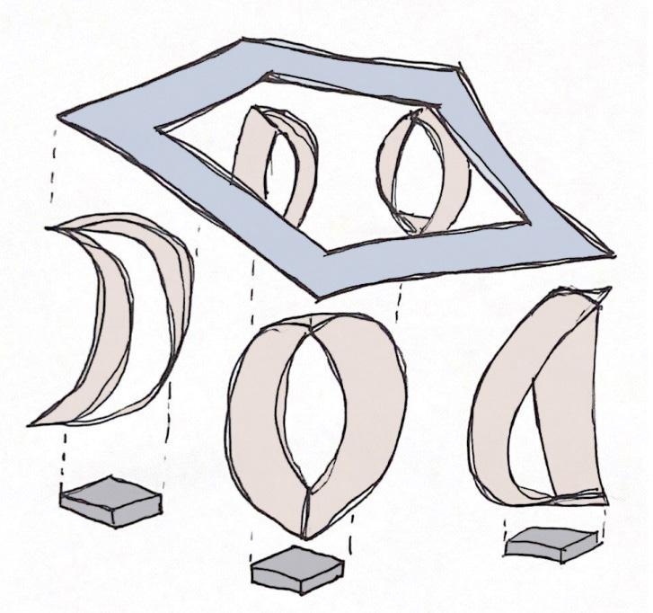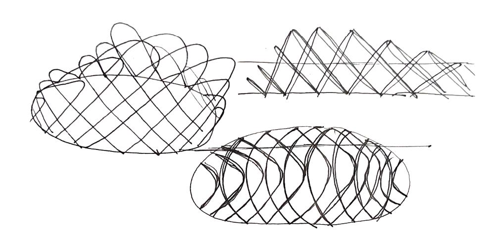 I then took inspiration from the weaving pattern of a basketball net. I found many precedents of a diagrid structure and decided that would best convey the concept I wanted to achieve in this project.