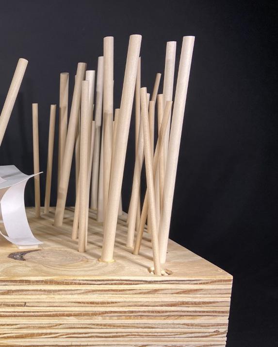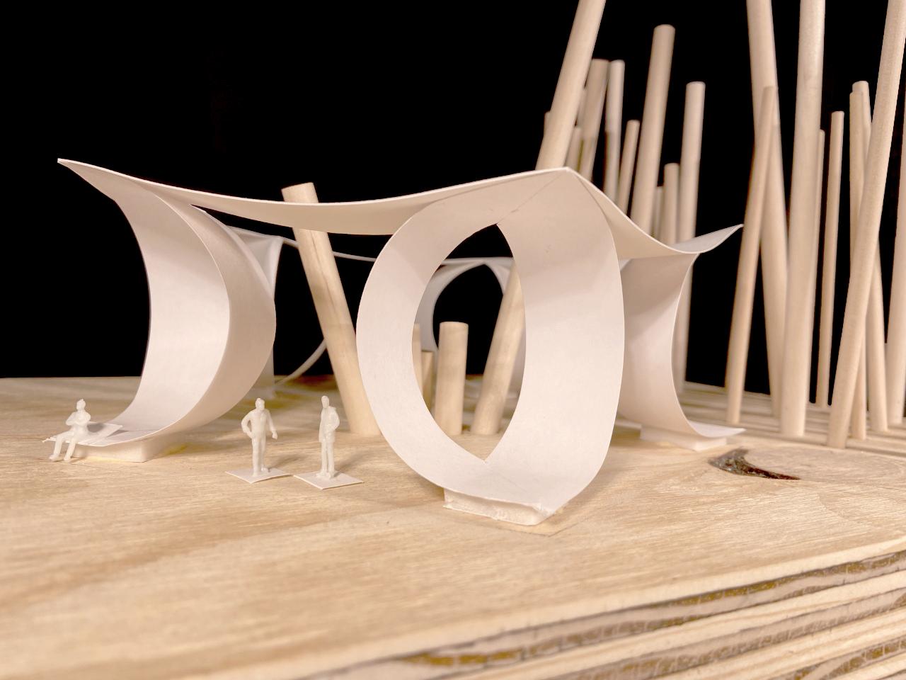 The word dynamic can be defined as characterized by constant change, activity, or progress. Human intervention in nature has the capacity to harm, overwhelm, and destroy, yet it also has the capacity to supplement, to revive, and to add value. The task of this project was to discover the balance of human intervention within the natural environment. The structure was to be an open-air pavillion hosting groups of four to six people for small gatherings and conversations at Riverfront Park. The word dynamic comes to mind as I think about both architecture and nature, and it became a central focus for me in the design of this project.