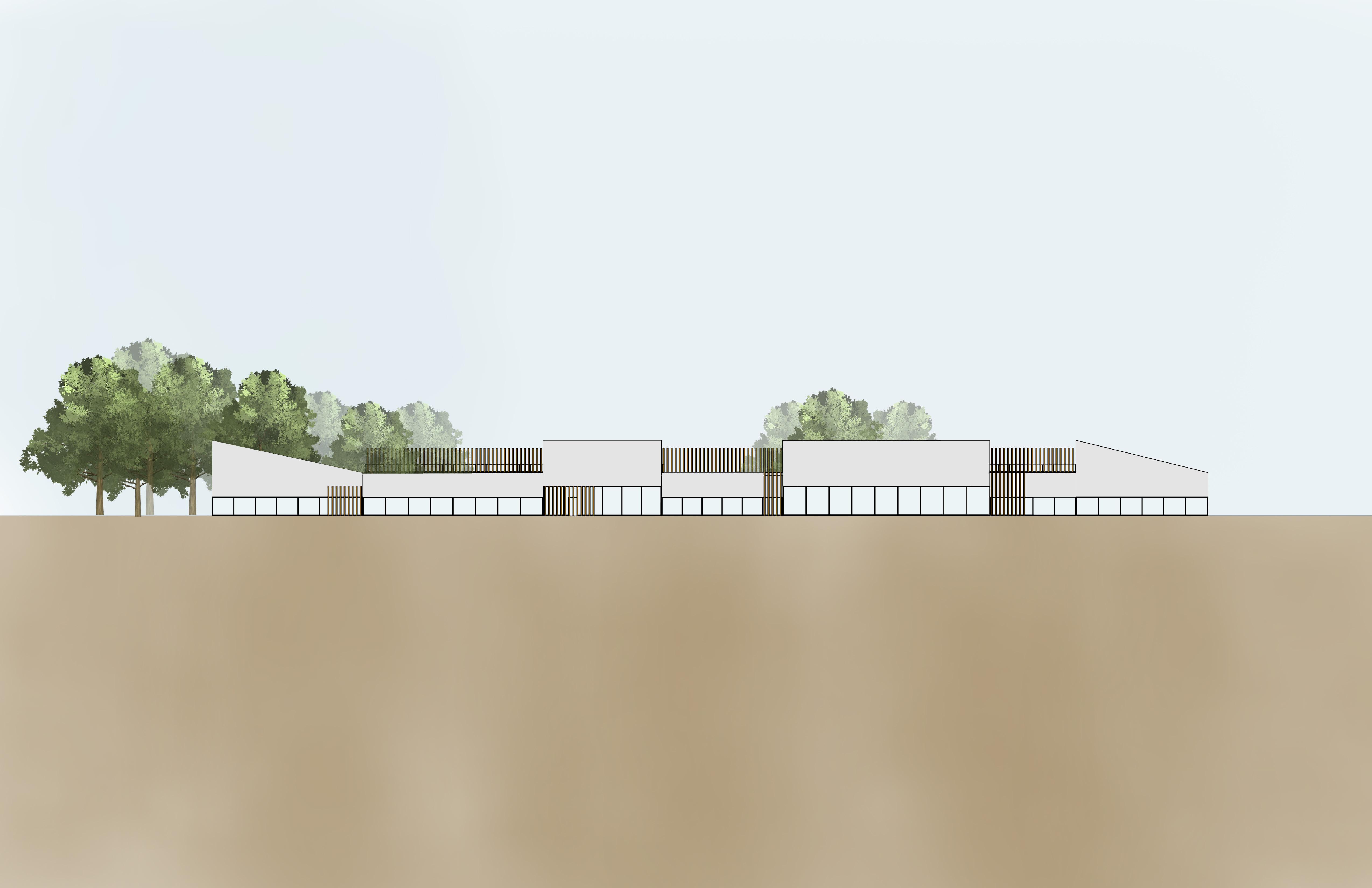 In order to most engage the entire landscape I opted for a long, thin form on the edge of the buildable site.