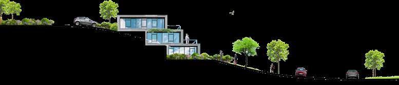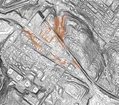 Steep topography from prior development and hydrological patterns provides challenges for new development.