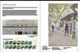 watering system when irrigation is warranted. All pavement is permeable, allowing water absorption throughout the plaza. The wetlands are filled with native wetland species and the raised platform in the right hand corner of the plaza serves as an outdoor seating space and as visible permeation display. Graphics