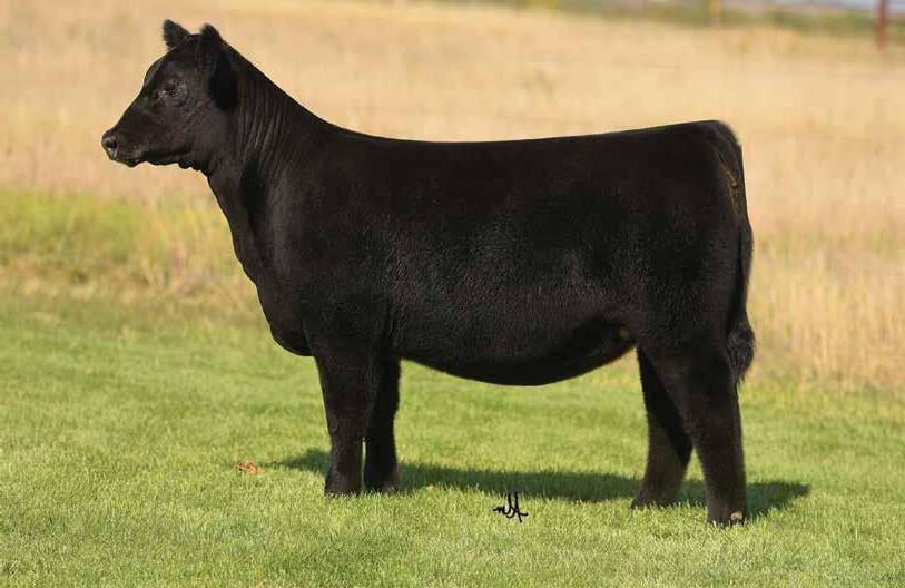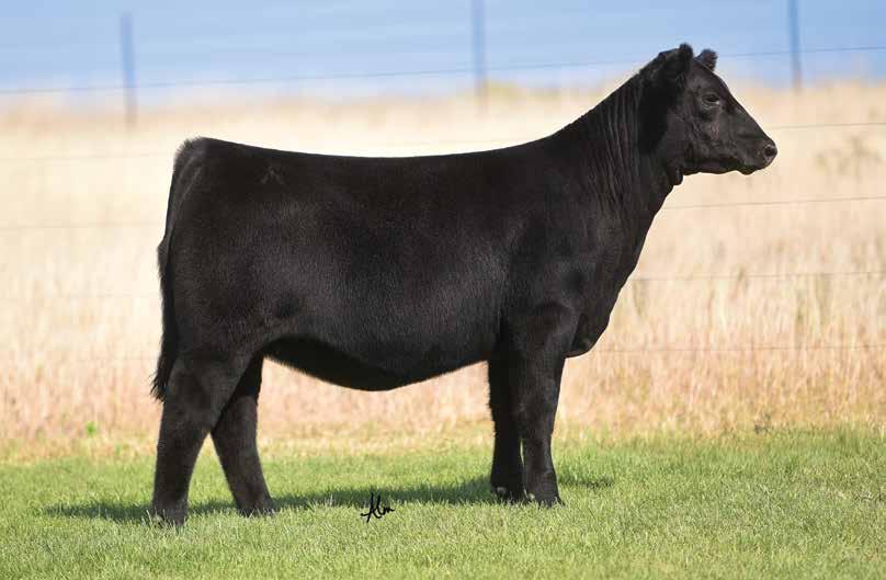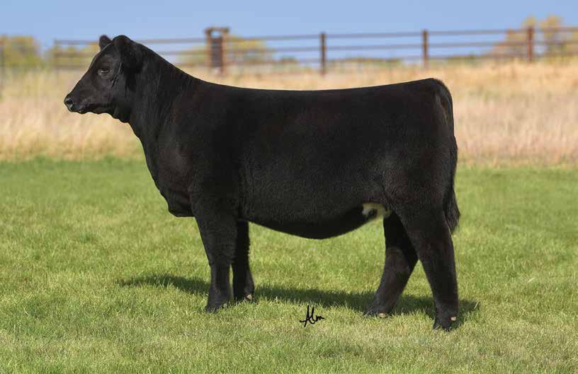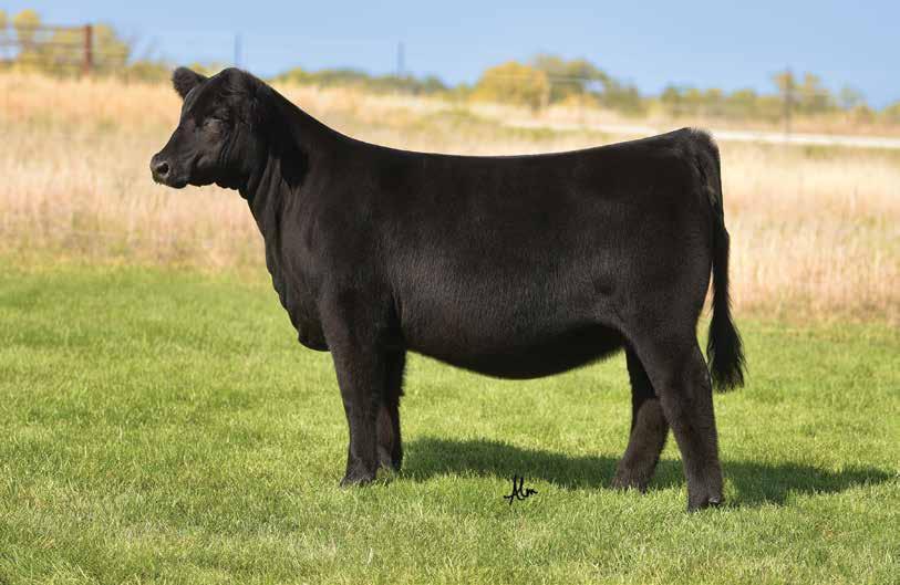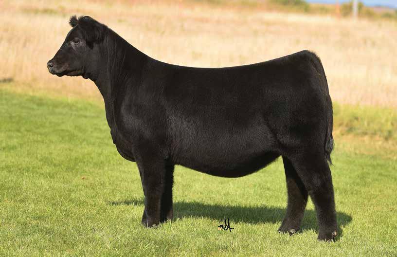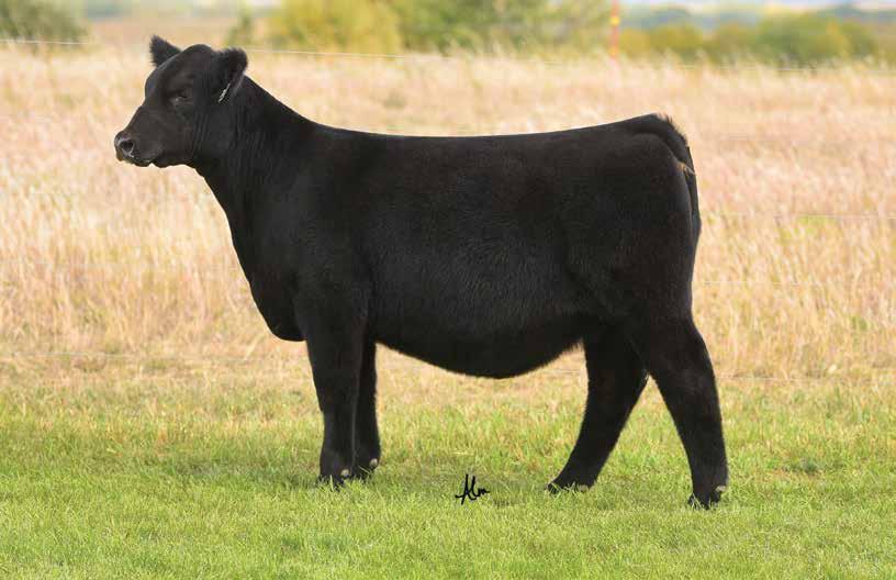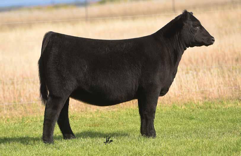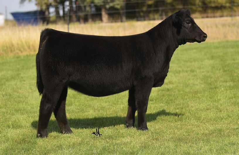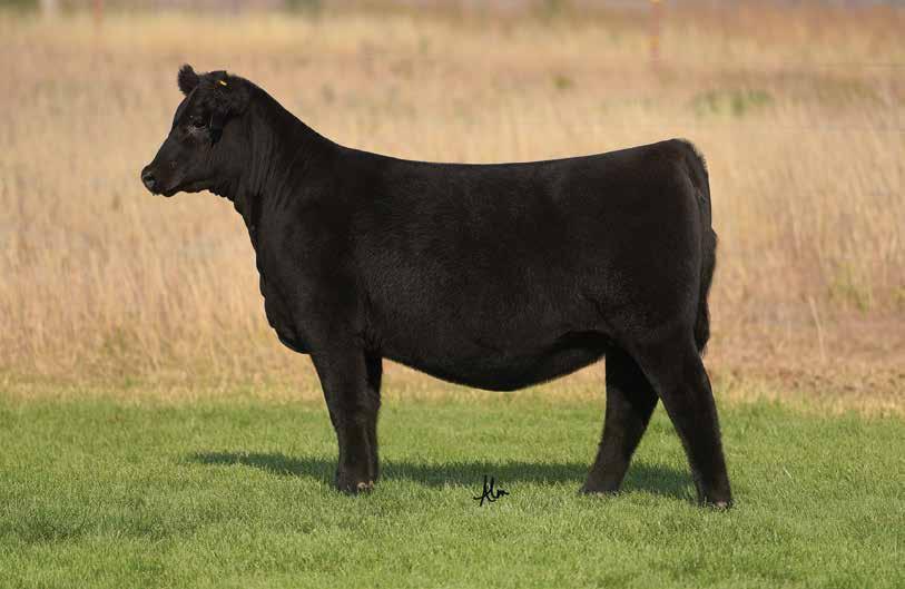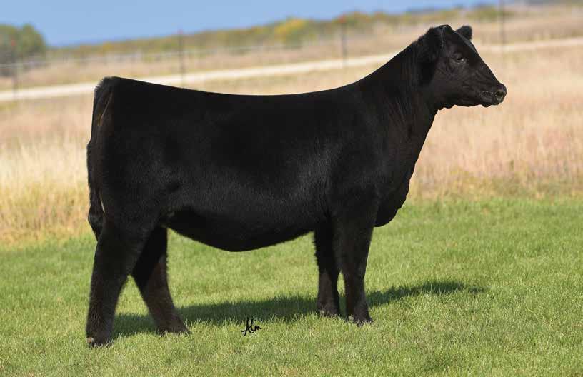 Big fan. One with the show heifer silhouette, but packs some genuine width and dimension from every angle. An Angus that’s actually big backed, wide pinned, huge hipped, and bold stifled. A soft caged, bold sprung female with a gnarly head carriage, ear set, and neck attachment that parks with a mouthwatering look. To be that robust about her heart and forerib, yet that tucked up in her chest floor is rare. She motors around with authority and pizazz on a square and flexible set of running gear with the perfect amount of foot and bone, one that commands every ounce of your attention and holds it. An incredible haired female that’s the right size, right scale, with the correct degree of power and density that I think the breed and show ring is trending towards. Her mother brings the whole equation together, a cow that hasn’t missed and has rapidly become a mainstay in our program as well as Brian Johnson’s. She raised our $70,000 high seller last fall, and averaged $30,000 on 5 head out of 3 different sires. With daughters making top 5 at state fairs, Aksarben, jackpots all over, the most impressive fact is their production. One of the first daughters in production, and a full sister to this female, raised MPJ’s $72,000 high seller a few weeks ago. Big time female.