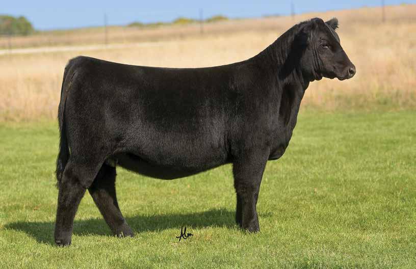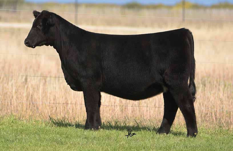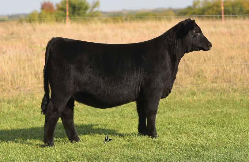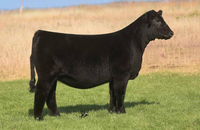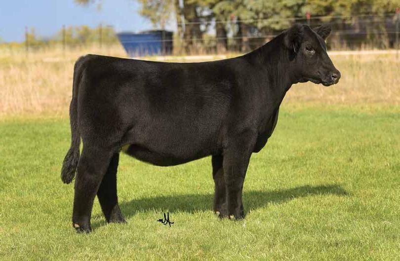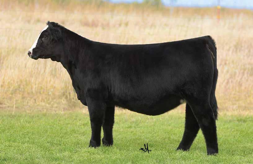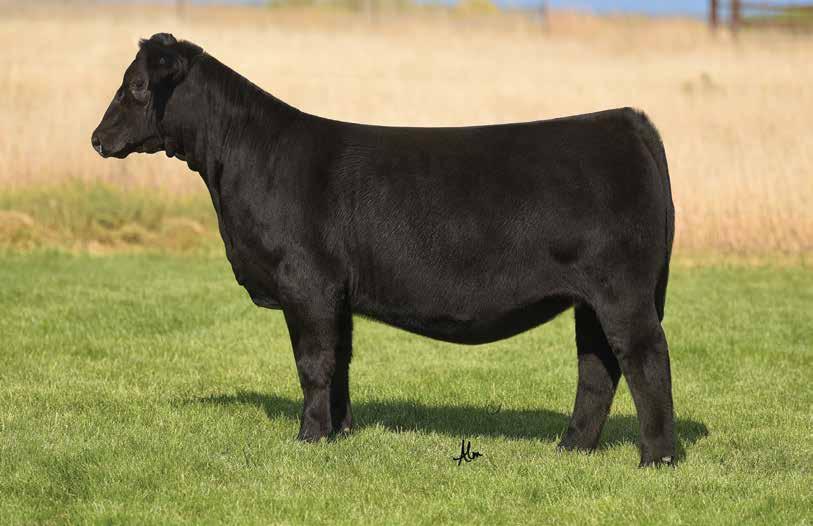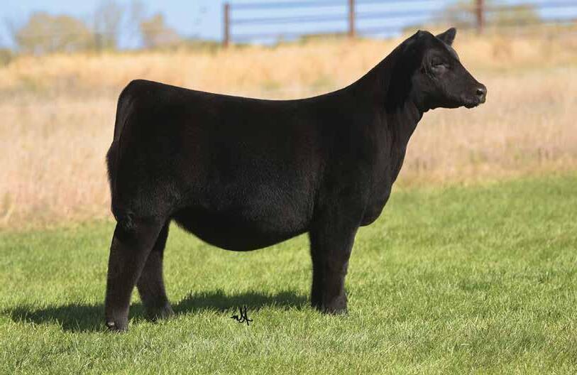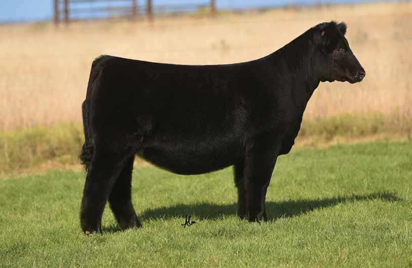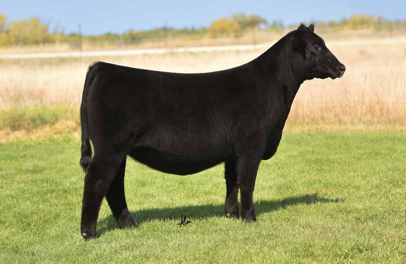 Big fan. One with the show heifer silhouette, but packs some genuine width and dimension from every angle. An Angus that’s actually big backed, wide pinned, huge hipped, and bold stifled. A soft caged, bold sprung female with a gnarly head carriage, ear set, and neck attachment that parks with a mouthwatering look. To be that robust about her heart and forerib, yet that tucked up in her chest floor is rare. She motors around with authority and pizazz on a square and flexible set of running gear with the perfect amount of foot and bone, one that commands every ounce of your attention and holds it. An incredible haired female that’s the right size, right scale, with the correct degree of power and density that I think the breed and show ring is trending towards. Her mother brings the whole equation together, a cow that hasn’t missed and has rapidly become a mainstay in our program as well as Brian Johnson’s. She raised our $70,000 high seller last fall, and averaged $30,000 on 5 head out of 3 different sires. With daughters making top 5 at state fairs, Aksarben, jackpots all over, the most impressive fact is their production. One of the first daughters in production, and a full sister to this female, raised MPJ’s $72,000 high seller a few weeks ago. Big time female.