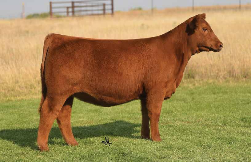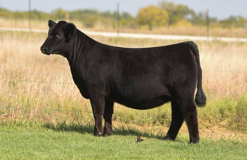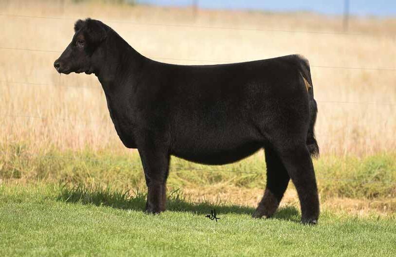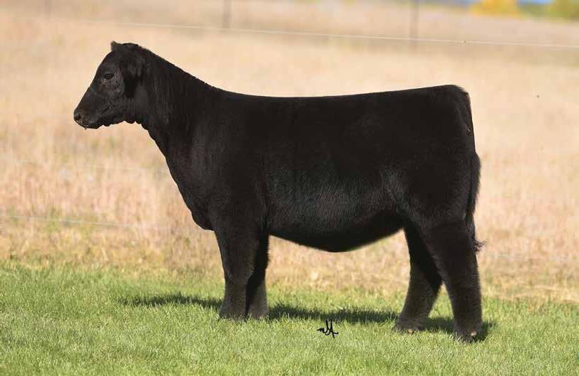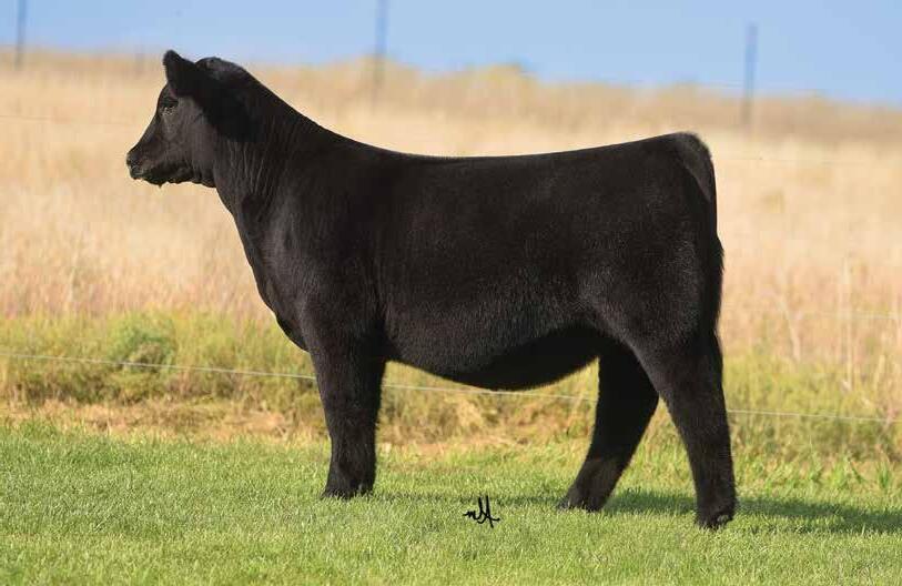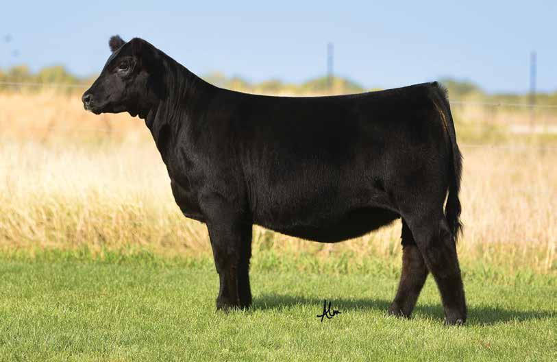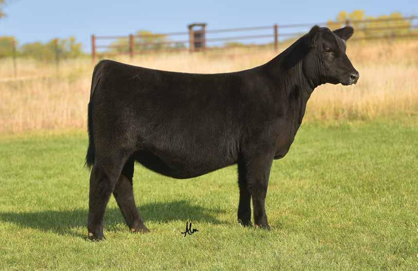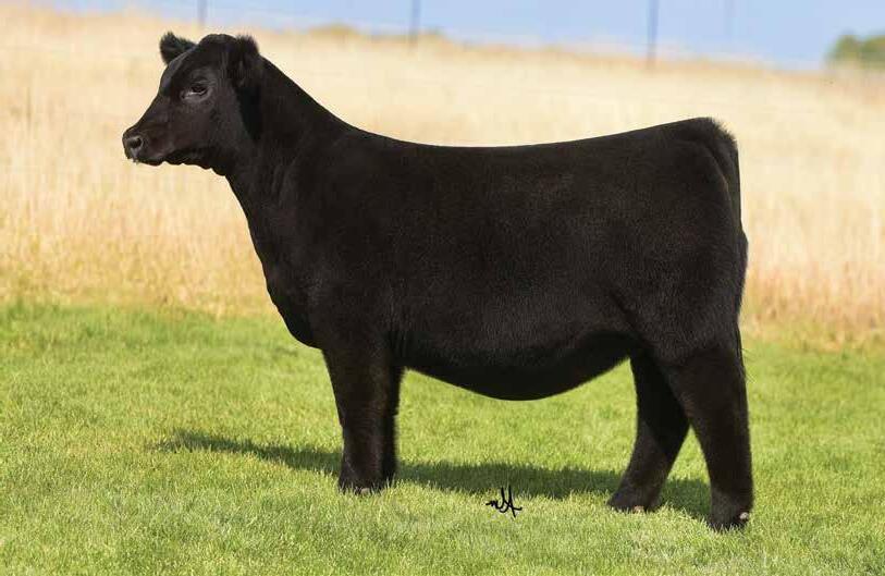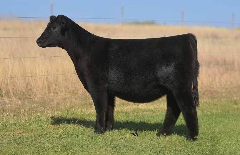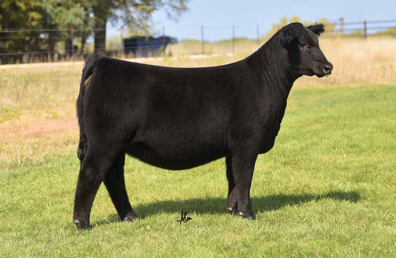 Big fan. One with the show heifer silhouette, but packs some genuine width and dimension from every angle. An Angus that’s actually big backed, wide pinned, huge hipped, and bold stifled. A soft caged, bold sprung female with a gnarly head carriage, ear set, and neck attachment that parks with a mouthwatering look. To be that robust about her heart and forerib, yet that tucked up in her chest floor is rare. She motors around with authority and pizazz on a square and flexible set of running gear with the perfect amount of foot and bone, one that commands every ounce of your attention and holds it. An incredible haired female that’s the right size, right scale, with the correct degree of power and density that I think the breed and show ring is trending towards. Her mother brings the whole equation together, a cow that hasn’t missed and has rapidly become a mainstay in our program as well as Brian Johnson’s. She raised our $70,000 high seller last fall, and averaged $30,000 on 5 head out of 3 different sires. With daughters making top 5 at state fairs, Aksarben, jackpots all over, the most impressive fact is their production. One of the first daughters in production, and a full sister to this female, raised MPJ’s $72,000 high seller a few weeks ago. Big time female.